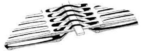Для этого используется продольно вытянутая сетка (одноосно ориентированная). Укладка производится по нижеприведенной схеме: