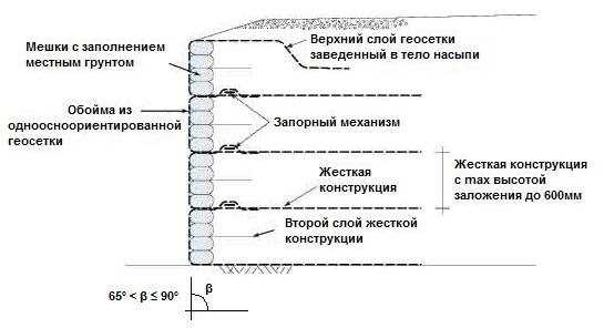 Чрезмерно крутые откосы устраивают способом обертывания: