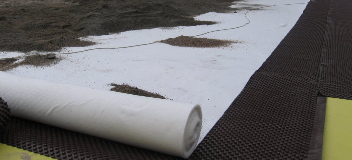 Для конструкций дренажа в виде фильтра, защиты от обвала и осыпей, а также в качестве гидроизоляционного элемента применяется геотекстиль. Этот материал обладает водопроницаемостью, сделан из синтетического полимерного материала и препятствует проникновению различных материалов и грунтов.