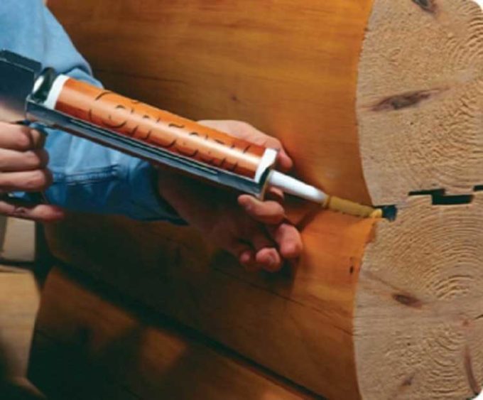 Герметик используют для закупоривания дыр, дефектов в древесных покрытиях и для сохранения теплоизоляции.