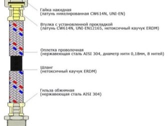 Толщина гаек подводки – вот на что необходимо обратить внимание при покупке. У дешевых низкокачественных товаров толщина небольшая, вследствие чего подводка под воздействием воды со временем может развалиться