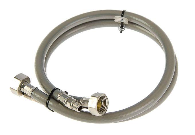 Гибкая подводка имеет латунный штуцер, который прикреплен посредством гильзы к шлангу. Соединение с подающей воду системой происходит через накидную гайку или штуцер.