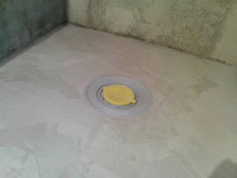 - нужно тщательно уложить смесь в места выхода коммуникаций душа: водопроводных труб и канализационного стока;