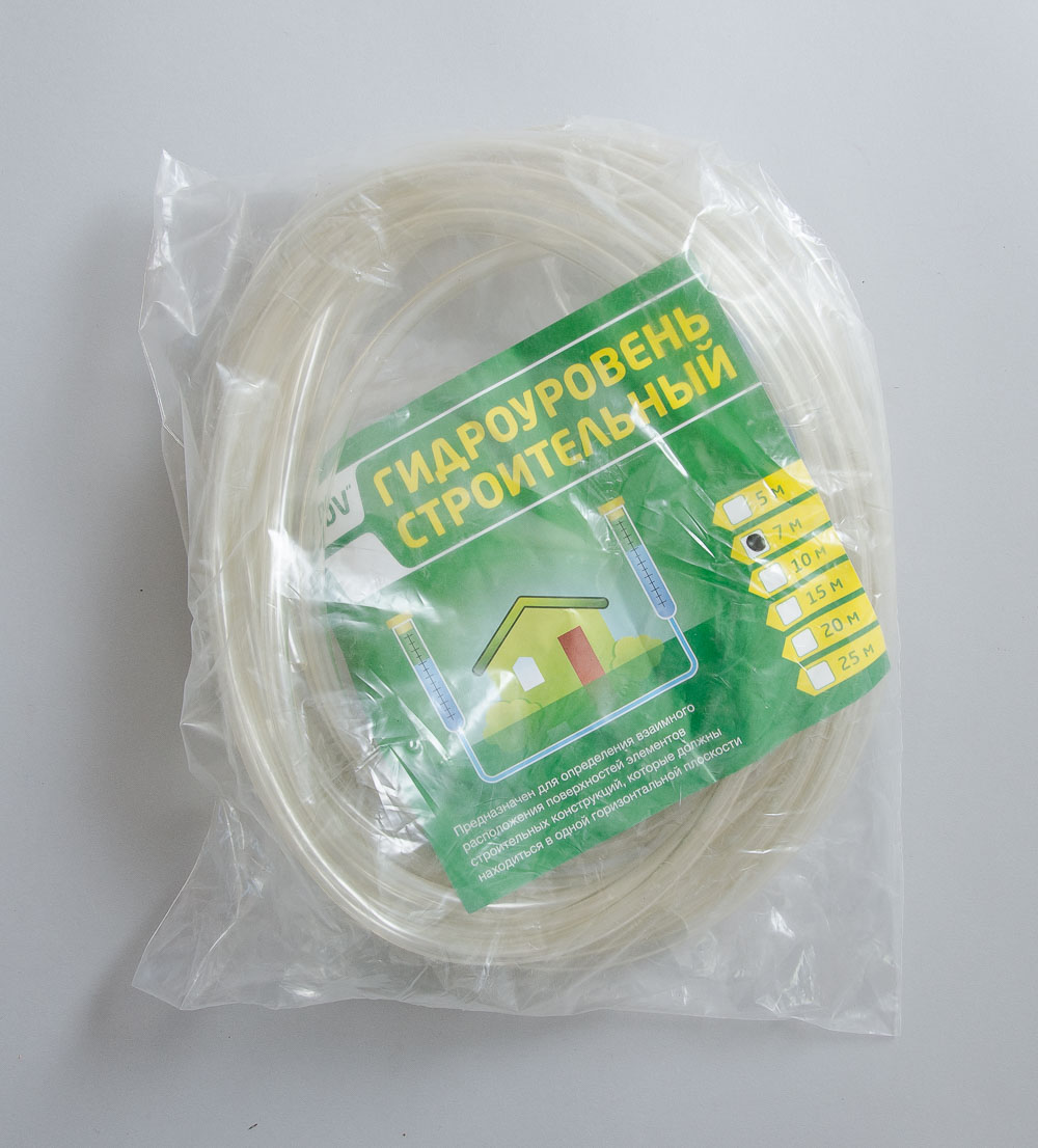 Оптимальная длина уровня приблизительно 10-20 метров, ее лучше рассчитывать исходя из размеров области применения. Если у вас на руках есть шланг нужной длины, вы уже приблизились к готовому простейшему ватерпасу!