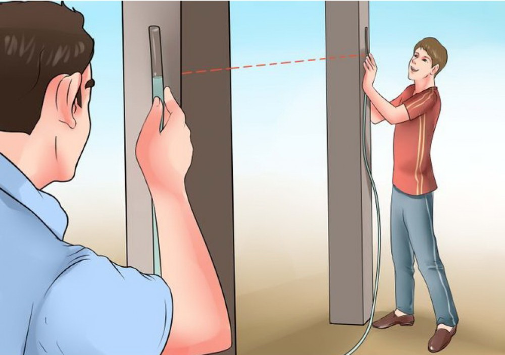 Гидроуровнем можно пользоваться как для создания маячков для горизонтальных линий, так и для установки относительной высоты различных объектов. Использование этого измерительного прибора значительно облегчается присутствием помощника.