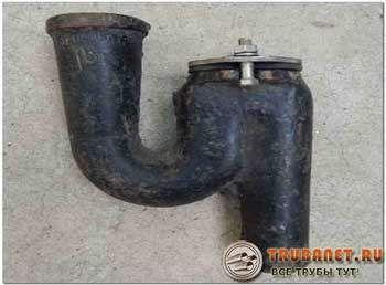 Сифон из чугуна обязательно снабжается ревизионным окошком, чтобы можно было производить очистку канализации без ее полного монтажа.