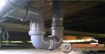 Все элементы канализационной системы взаимосвязаны. Например, фановая труба предотвращает «срыв сифона» – втягивание воды в стояк при спуске за счет уравнивания давления в канализационной трубе. Для этой же цели используются и воздушные клапаны различных конструкций – смотрите особенности установки, разновидности и производители. Их применяют при отсутствии в конструкции здания фановых труб.