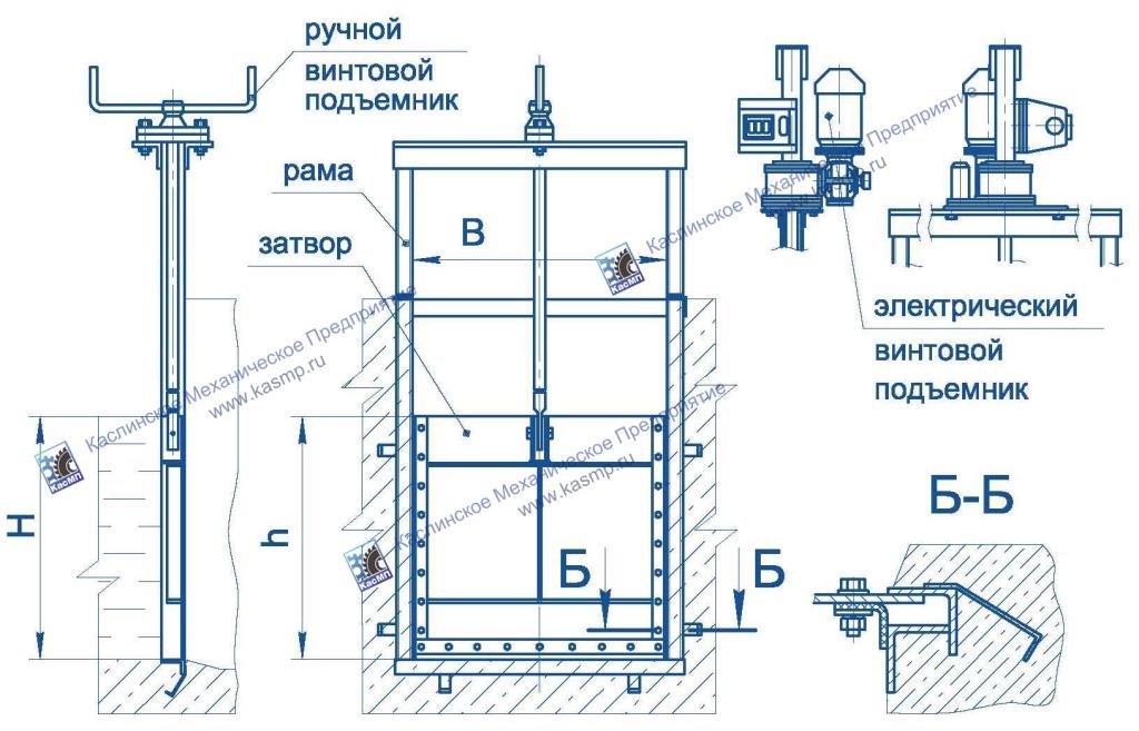 Выполнен по типовому проекту 3.820.2-44 «Подъемники винтовые для затворов гидротехнических сооружений грузоподъемностью до 20т, модели В-83». И в зависимости от расчетно-тяговых усилий и требований заказчика применяют: