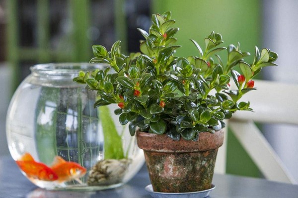 «Золотая рыбка» любит влажность. Емкость с растением необходимо расположить в поддоне со сфагнумом или галькой, которые должны быть постоянно влажными.