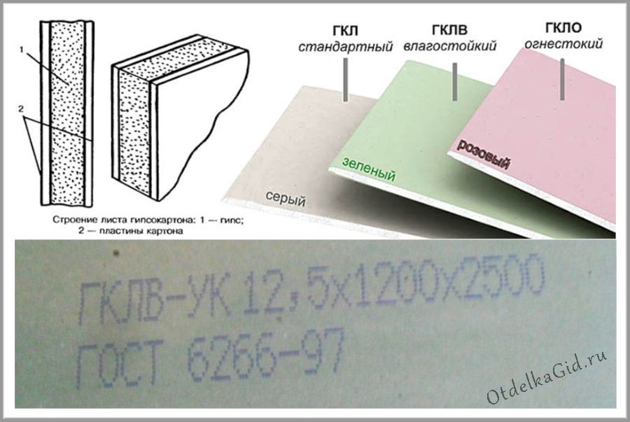 - ГКЛВ. Листы гипсокартона выпускаются со специальной пропиткой, предназначенной для защиты от влаги