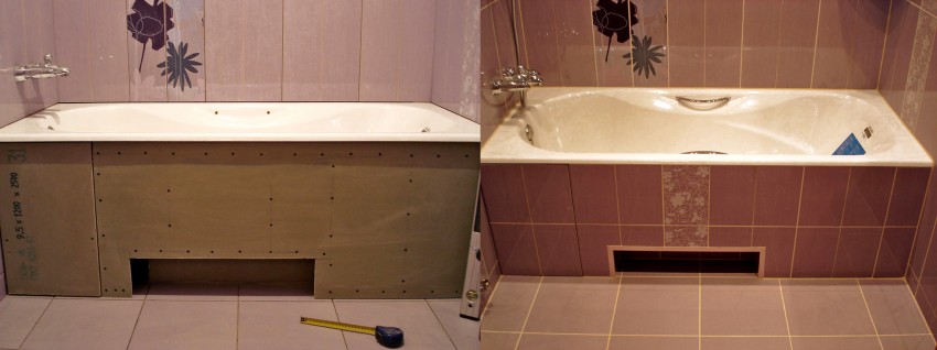 Как видите, все достаточно просто, а самое главное, что никаких больших капиталовложений для этого не нужно. Сделанная таким образом ванная из гипсокартона своими руками будет радовать ваш глаз очень и очень долго. При условии, что кафельная плитка будет положена качественно и с соблюдением всех нюансов технологии, одним из которых является шпаклевка гипсокартона клеем для кафеля. Этот шаг обеспечит дополнительную защиту гипса от воздействия влаги.