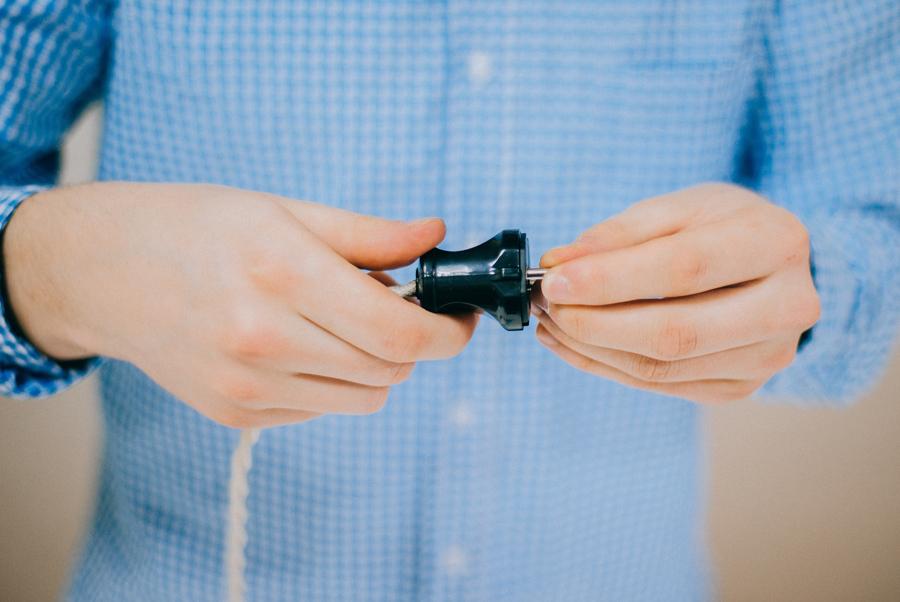- 1 конец прикрепляют к загнутому гвоздю, вставленному в дрель, второй привязывают на расстоянии к какому-либо предмету – крючку, ножке стола.
