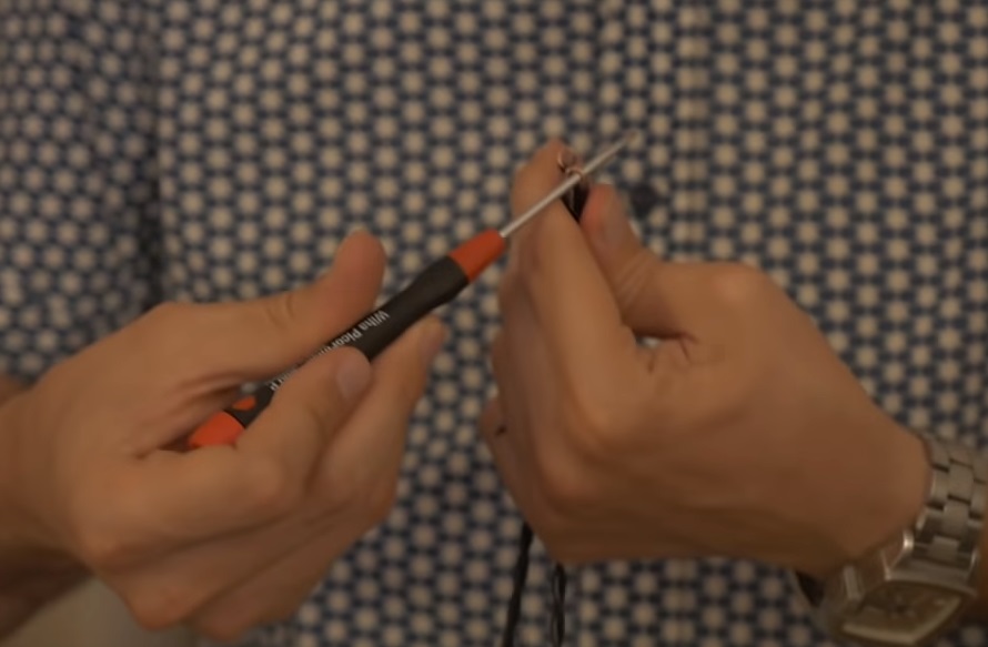 Вставляют плоскую отвертку в отмеченной точке и раздвигают кабели так, чтобы между ними образовался участок в форме кольца.