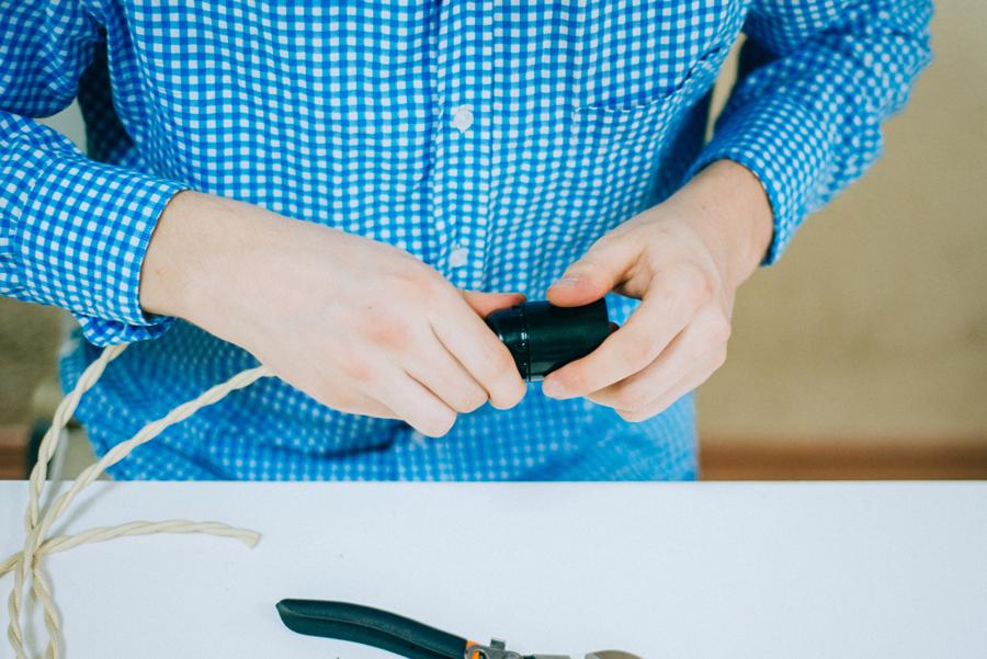 В гирлянде не имеет значения, какой кабель к какому контакту присоединять. Для изделия в стиле ретро больше подойдут патроны старого образца – карболитовые, которые состоят из 3 частей: