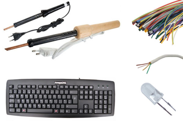 Для ускоренного создания гирлянды можно воспользоваться одним из самых бюджетных вариантов, связанных с разборкой старых компьютерных устройств ввода – мыши и клавиатуры.