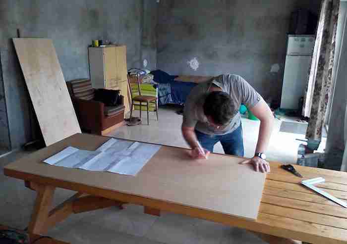 Нанесение на фанеру деталей конструкции для последующего выпиливания