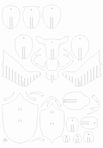 Обычно чертежи поставляются со стандартными габаритами, которые соответствуют реальным предметам. Например, голова лося из фанеры после сборки будет полностью соответствовать оригинальному трофею. Именно поэтому профессиональные мастера советуют производить пересчет всех размеров в соответствии с потребностями.