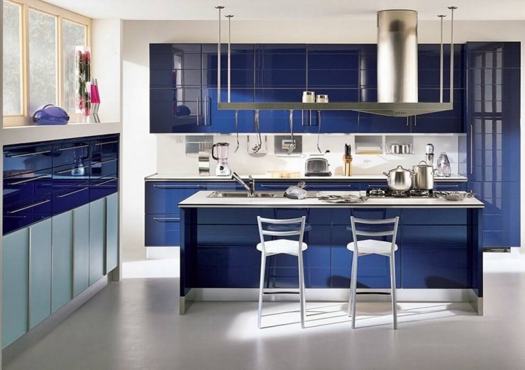Дизайн кухни в синих тонах