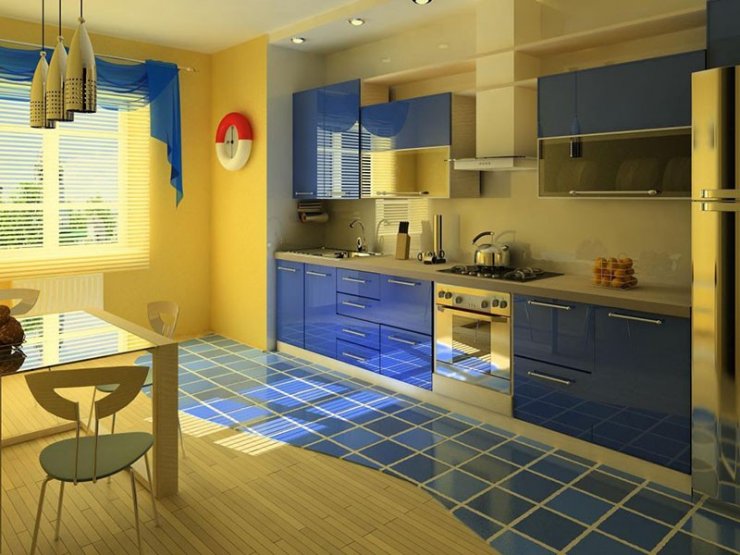 Кухня желто-голубая