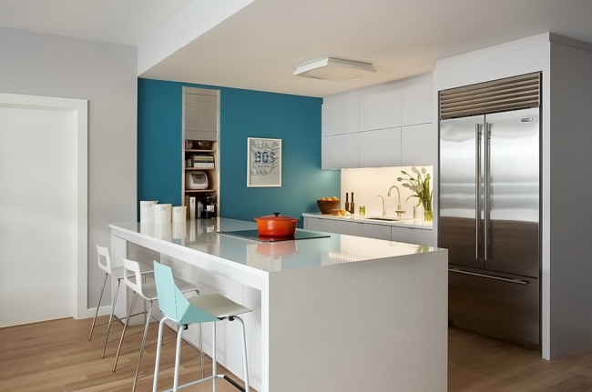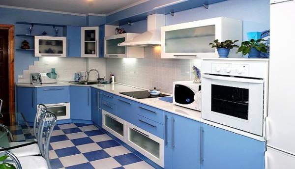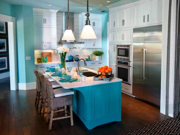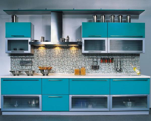 Приняв решение о том, что вы хотите использовать голубой цвет для оформления кухни, необходимо ответить на вопрос: что именно в интерьере будет голубого цвета?