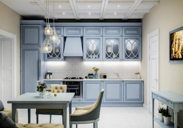 Уютный дизайн кухни в голубом цвете