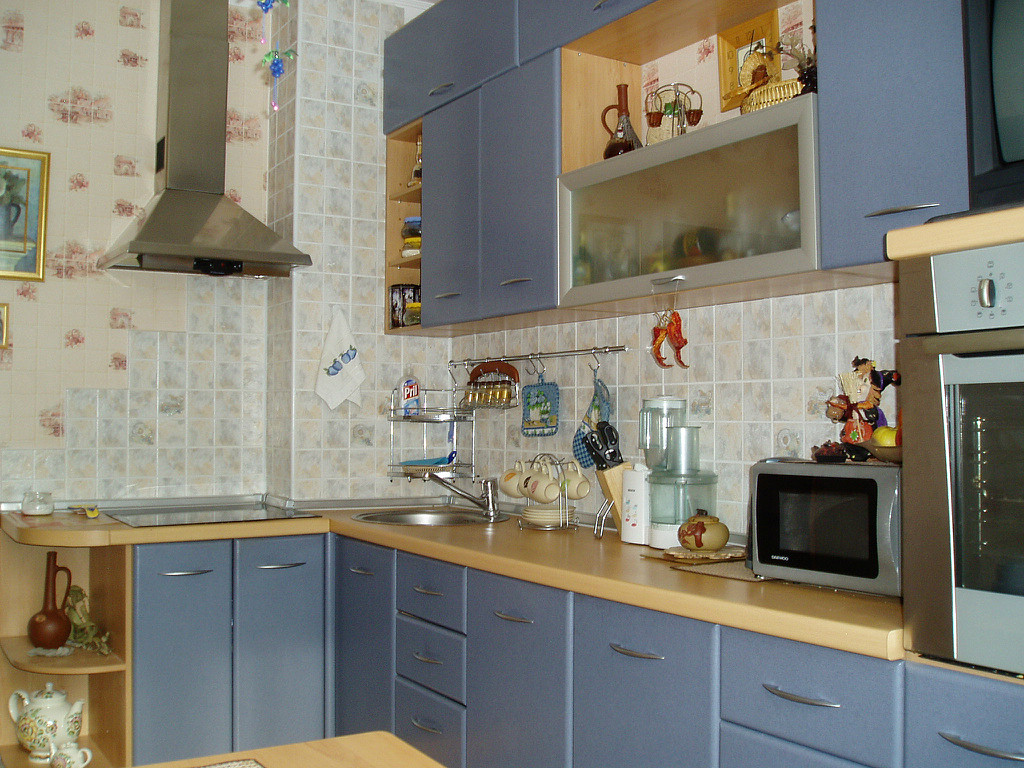 Синяя деревянная кухня