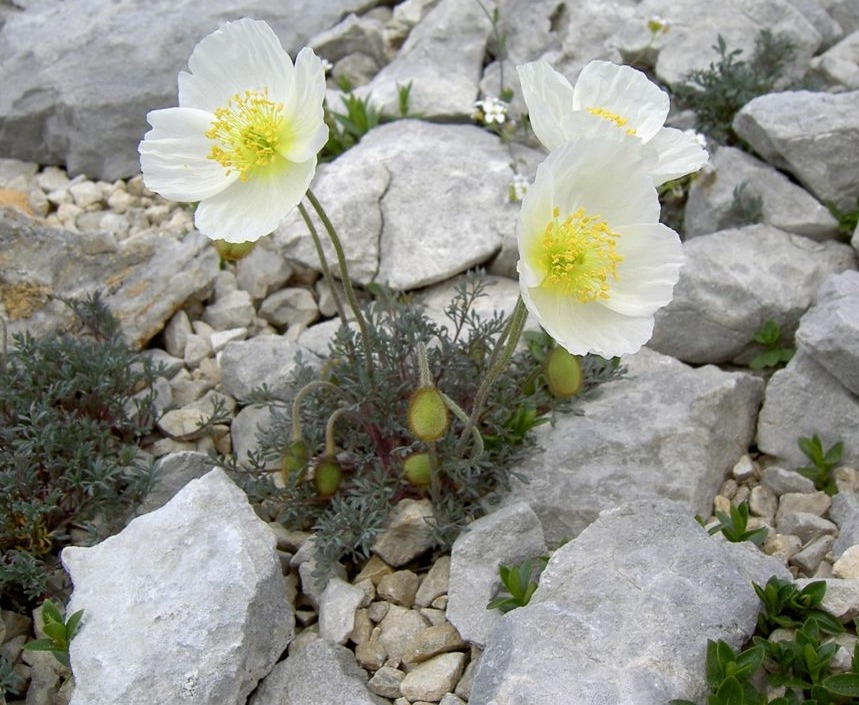 На этой каменистой корке высажены тюльпаны, примула, горечавка, камнеломка, алиссум, седум, молодило, армерия, ясколка, барвинок, карликовые формы хвойных.