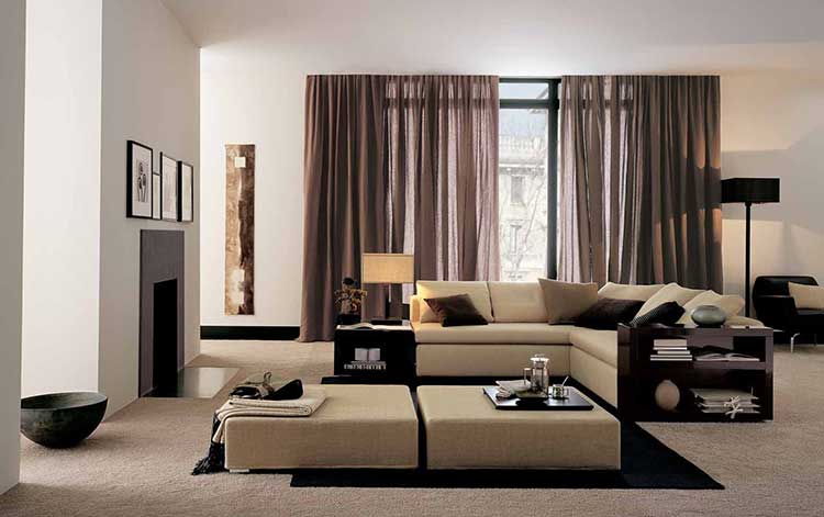 Лучшим вариантом для обустройства подойдет элегантная мебель без лишнего декорирования. Ковры и обои необходимо подбирать однотонные или с незначительным рисунком, который гармонично должен сочетаться с интерьером в целом. Для декорирования окна подойдут гардины из плотных тканей, занавешенные поверх тюля.