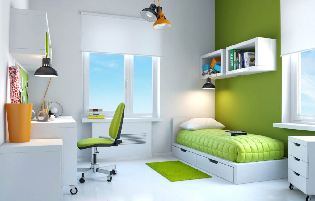 Хай-тек подходит для небольших помещений. Чистые, прохладные цвета и отсутствие дополнительной мебели помогут создать иллюзию большего пространства в комнате.