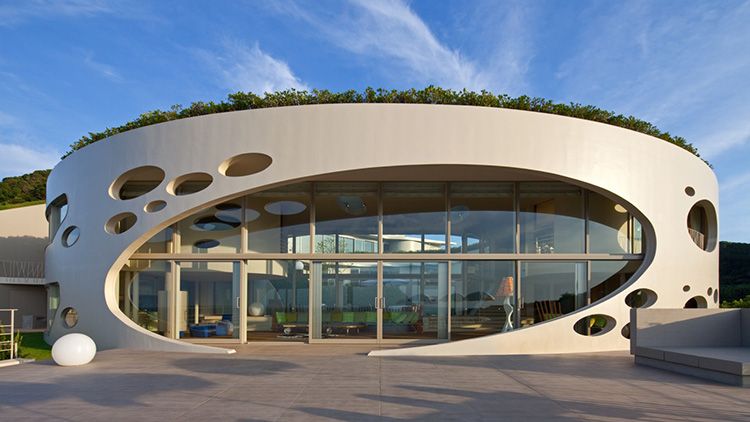 Хотя архитекторы прогнозируют бионическому хай-теку большое будущее, тем не менее, в настоящее время это стилевое направление не очень востребовано. Био-тек – это гармоничное сочетание высоких технологий и природы. Плавные линии зданий позволяют удачно вписывать их в окружающий ландшафт. При проектировании домов в стиле бионического хай-тека ищут вдохновения в природе и, наверное, поэтому линии фасадов и крыш напоминают океанские волны, переплетенные лианы и т.д. Идеальное решение для загородных домов.