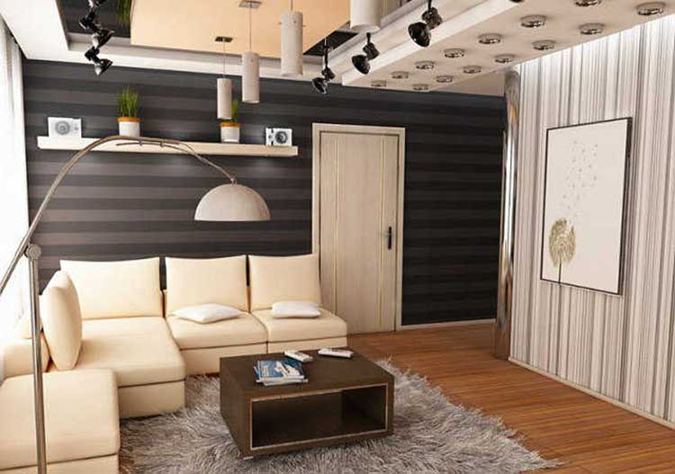 Важным условием для всех осветительных приборов является многозадачность и легкость. Поэтому для гостиной стоит приобрести напольные светильники, настольные лампы на кронштейнах, струнные софиты, галогенные лампы со стеклянными и металлическими плафонами.
