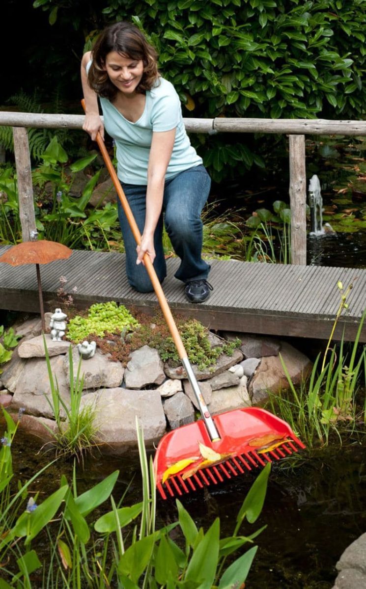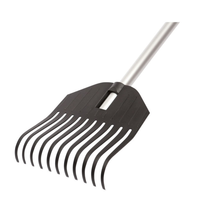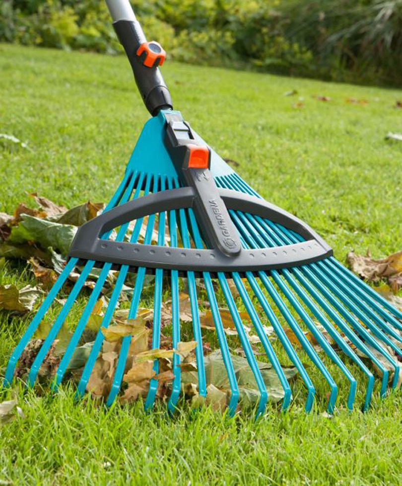Инструмент с редко расположенными зубьями используют, чтобы сгребать крупный мусор, а сухую траву и мелкие камешки убирают граблями с частыми зубьями.