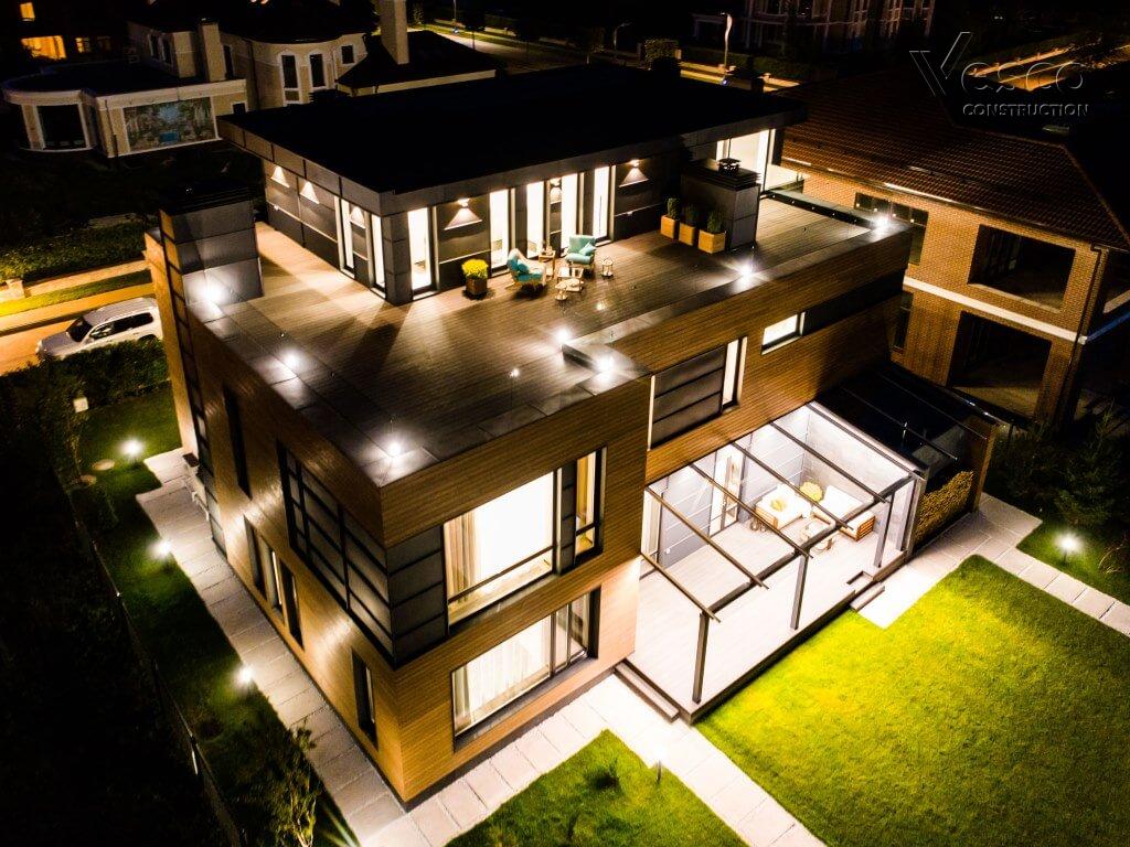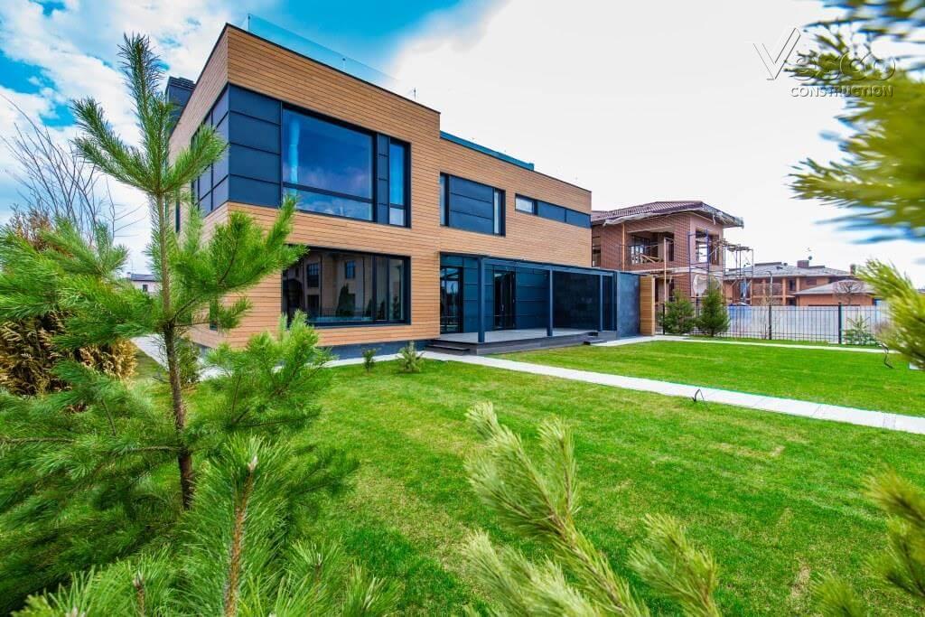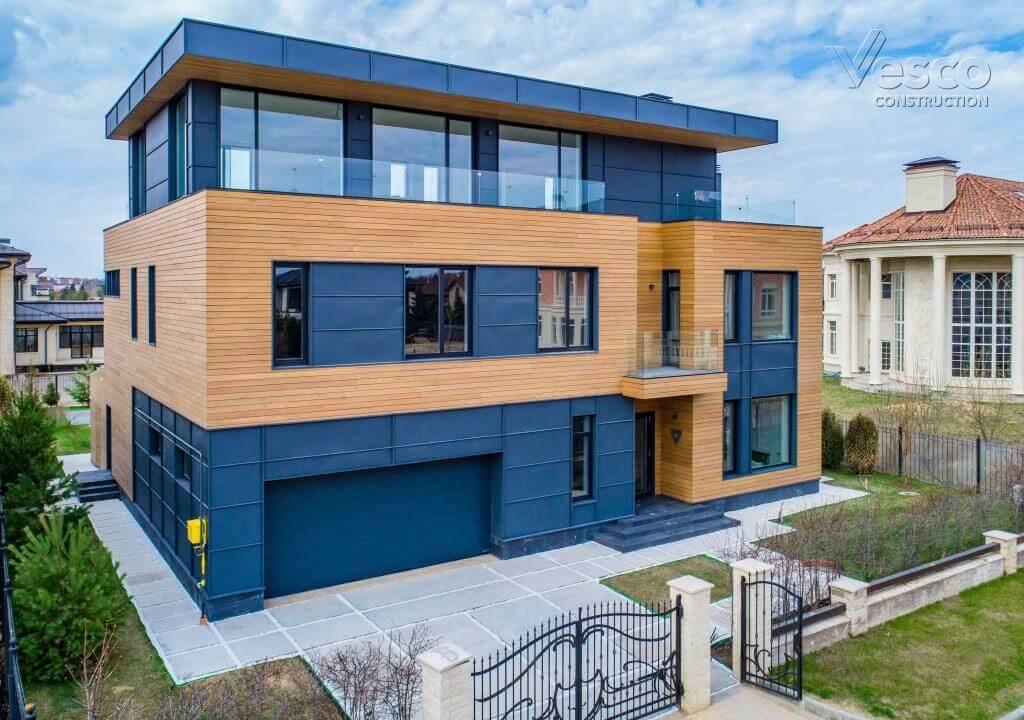 Стильный ультрасовременный двухэтажный особняк по проекту «Vesconti» построен в КП «Миллениум Парк» на 20 км Новорижского шоссе. На участке размером 10 соток расположился дом площадью 473 кв. м. Это роскошный комфортный загородный дом, который дает возможность жить в гармонии с природой. Он предназначен для постоянного проживания семьи из 4-5 человек. Строительные работы были завершены в 2017 году.