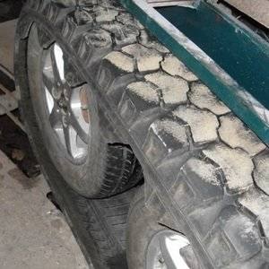 Среди самодельщиков очень распространено изготовление гусениц, используя автомобильные покрышки. Для этого выбираются покрышки, у которых подходящий рисунок протектора, от грузовых автомобилей.