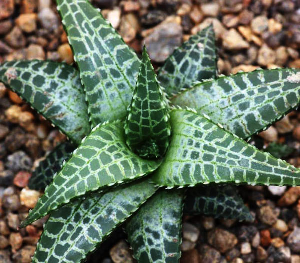 Хавортия мозаичная или шахматная (H. tessellata) — отличается мясистой листвой выпуклой снизу, расположение которой напоминает спираль. Края обрамлены малоразличимыми зубчиками, а узор в виде сеточки из тонких полосок поражает своей неординарностью. В естественной среде цветение отмечается дважды в год.