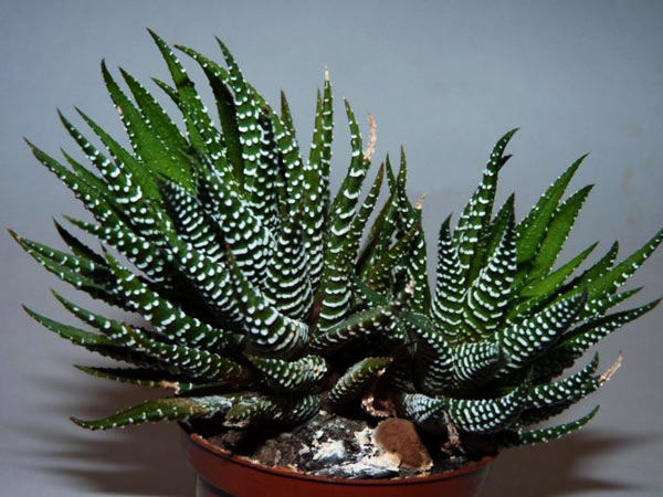 В домашних условиях для ухода за хавортией лучший горшок – пластмассовый круглый. В квадратных корни изгибаются и гниют.
