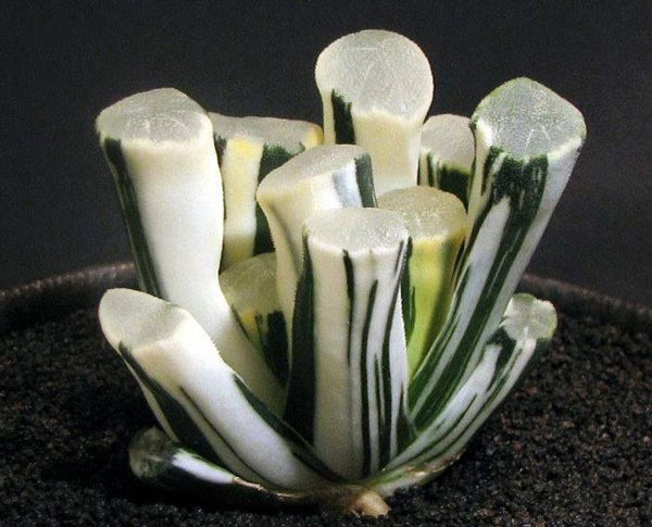 Хавортия Маугани (H. maughanii) — уникальность сорта вызвана наличием листьев цилиндрической формы с полупрозрачными кончиками.