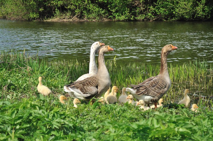 После того как гусята вывелись, их необходимо сразу же отсадить. Подпускать к матери птенцов лучше всего на пятый день, когда они окрепнут. Маленьких гусят она может легко подавить. Птенцы быстро привыкают к матери, обучаются залезать ей под крылья. Гусак подпускается к детям, когда они выходят на первую прогулку. При соблюдении этих мер и сроков можно получить дружную гусиную семью, вожак которой будет защищать и заботиться обо всех ее членах.