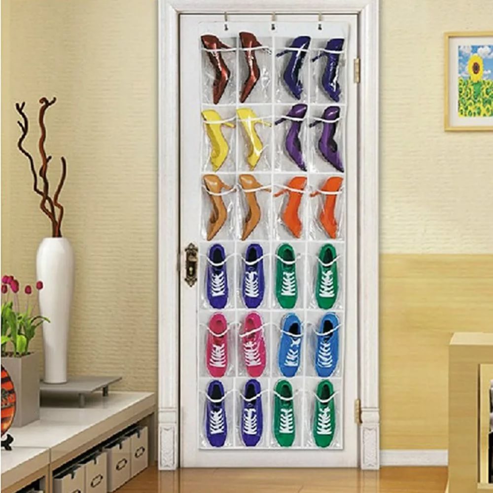 Легкие туфли, балетки, сандалии можно хранить в текстильном органайзере, подвешенном на крючок в шкафу или в прихожей.