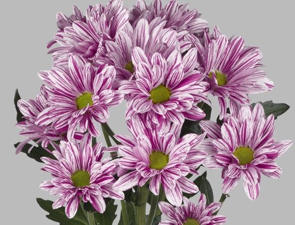 «Анастасия» – изящные тонкие лепестки соцветий окрашены традиционно в белый, желтый, сиреневый тон, экстравагантный зеленый, насыщенный лимонный.