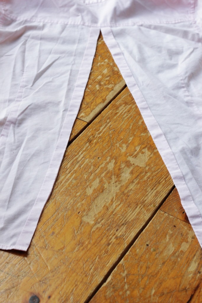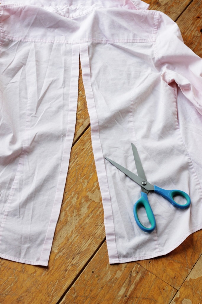 Разрезаем рубашку по средине в области спины до уровня лопаток.