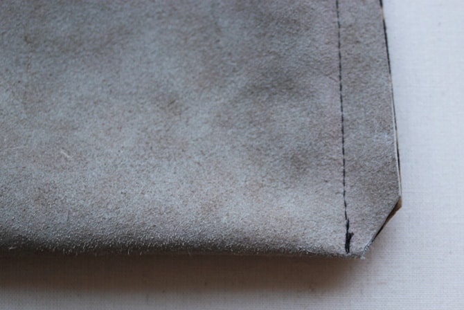 Выворачиваем материал на изнанку и отмечаем по бокам место для швов.