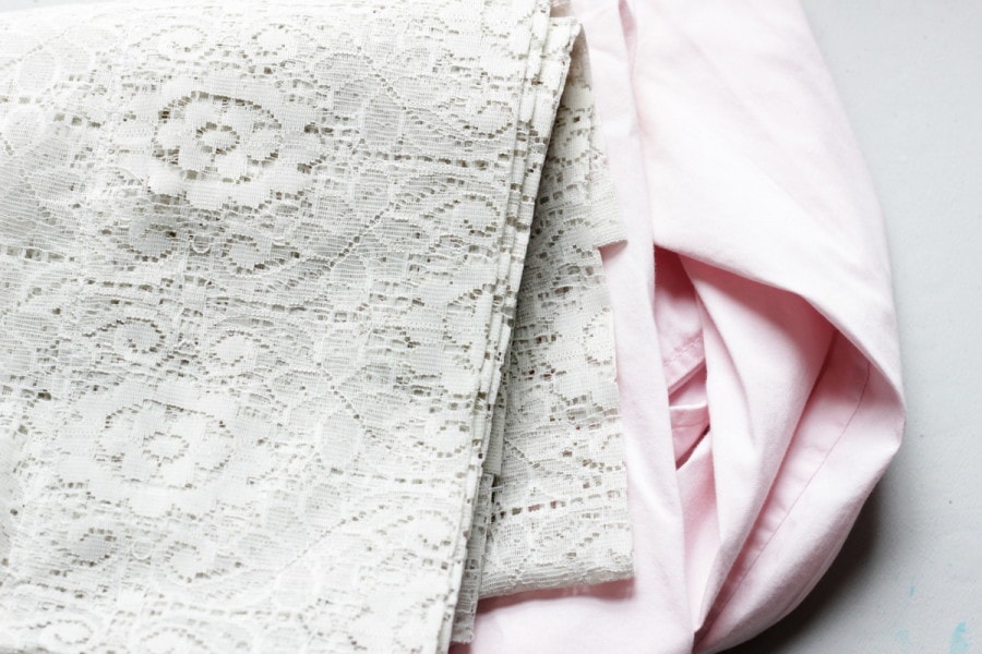 Чтобы самостоятельно сделать такую вещь, подготавливаем рубашку, кружево, булавки, ножницы и нитки. Вместо кружева можно использовать ненужную скатерть или занавески.