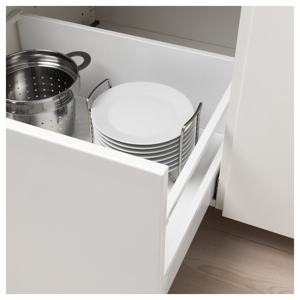 Все кухонные тумбы Икеа имеют стандартную ширину 40-60 см, высоту 60-80 см. Они идеально вмещают всю необходимую посуду, при необходимости можно выбрать стеллаж открытого типа и тогда не придется крепить дверцы. Для маленьких помещений емкости для хранения особенно важны – они экономят и без того дефицитное пространство, создают единый стиль, гармонично смотрятся со стороны.