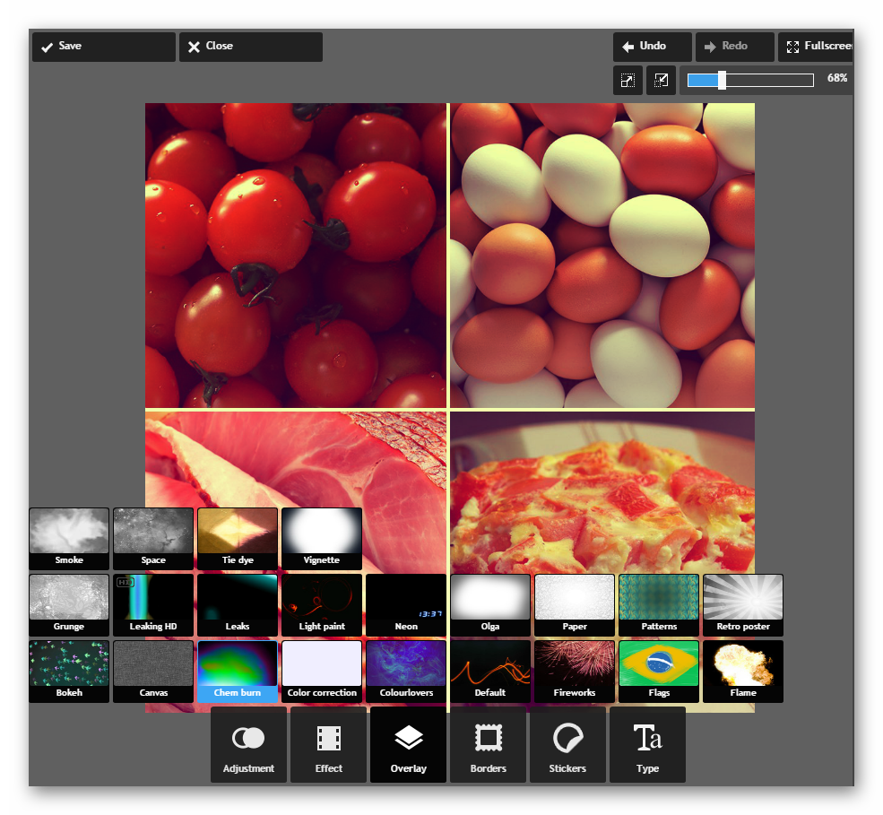 А вот Pixlr Express не русифицирован, но этого и не нужно — разобраться здесь легко