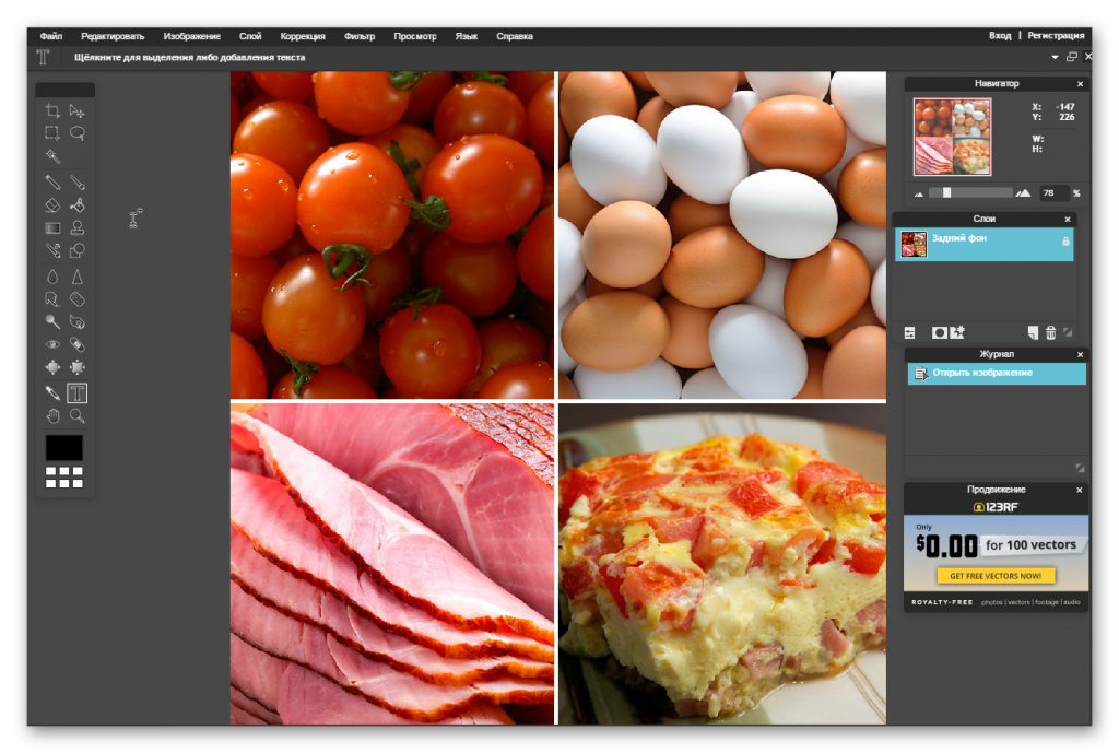 Меню и функционал в Pixlr Editor— почти как в Фотошопе. Внутри все на русском языке