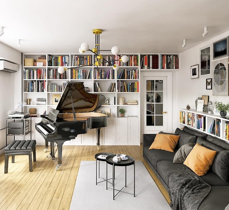 Расстановка мебели сильно зависит от формы комнаты. Например, если у вас с квадратная гостиная, мебель в ней лучше будет расположить в центре, возможно, вокруг журнального столика.