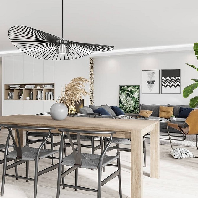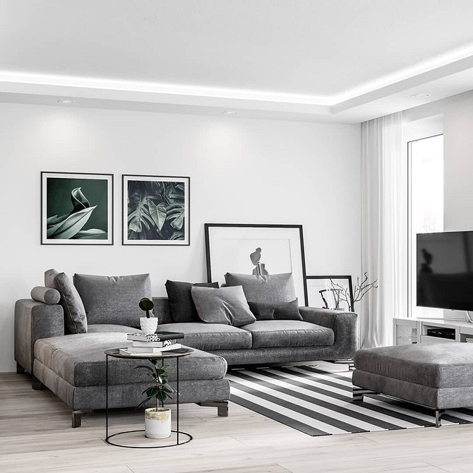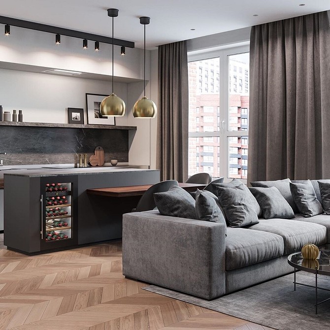 В последнее время дизайнеры стремятся создать в помещении единое пространство. Больше нет необходимости разделять зоны гостиной с помощью отличий в уровне пола и потолка или за счет разных отделочных материалов. Без этих сложных переходов комната выглядит намного более свободной и просторной.