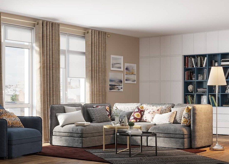 На ее выбор повлияют дизайнерские решения для гостиной и 22 кв. м., а точнее и ее размеры.