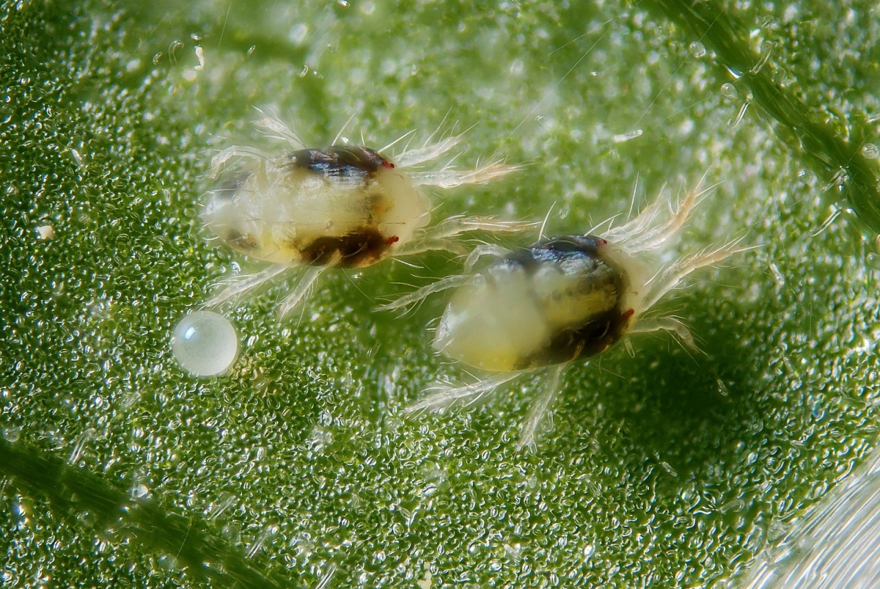 Признаки: миниатюрные насекомые селятся на тыльной стороне листьев и пьют с них сок. Меры борьбы: